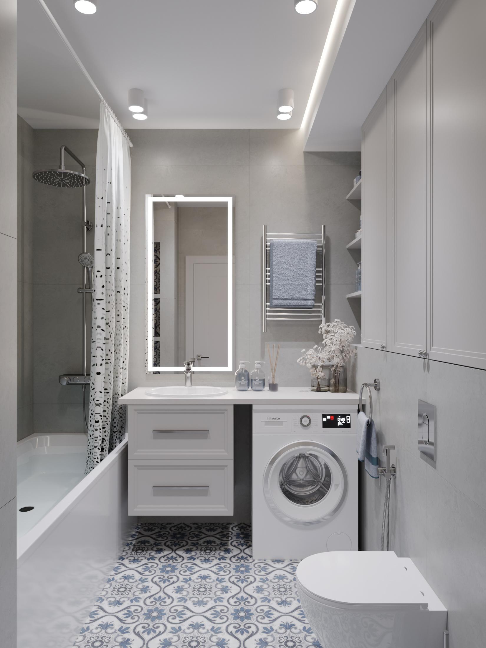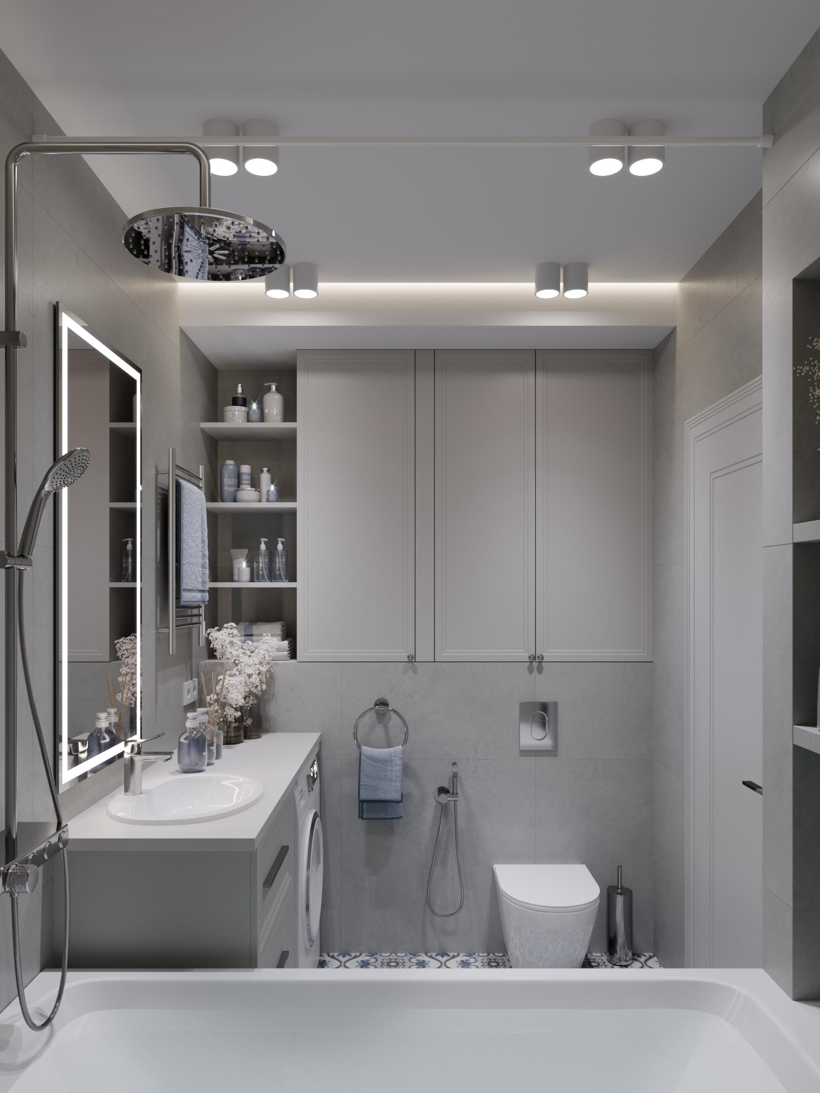 * Светлая ванная комната.
